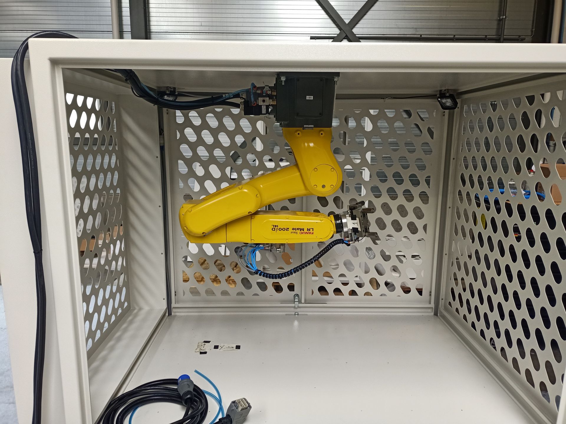 Binnen dit project hebben wij ondersteuning geboden bij de realisatie van een industriele robotoplossing rondom een robot, geintegreerd in een bestaande CNC machine. Onze werkzaamheden bestonden uit het mede assembleren van de robot in een beschermende behuiziing, het monteren van een raster, monteren van de gripper en het plaatsen en aansluiten van LED verlichting in de behuizing. Daarnaast hebben we geholpen met het aansluiten van de installatie inclusief bekabeling. Door deze oplossing is een proces geautomatiseerd wat voorheen handmatig werd uitgevoerd.